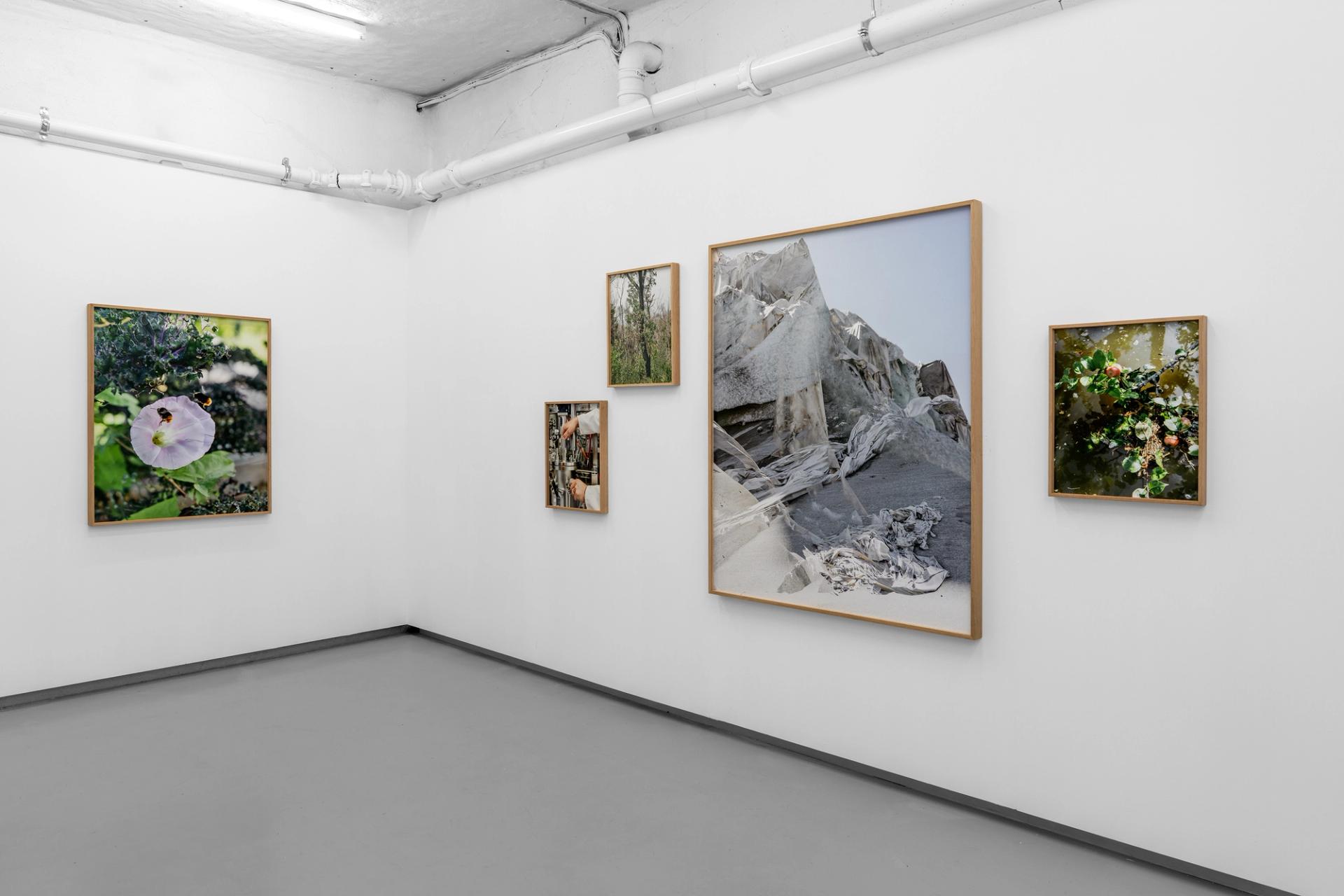 Particularly relevant for Honerud’s project is Sontag’s pondering on the ambiguity of photographic “truth” and of whether staged or edited photographs may still convey any such thing. While Honerud’s practice is rooted in the long-standing tradition of socially engaged documentary, Regarding the Pain of the Future continues her more recent experimaentation with image manipulation by using Photoshop against the grain. Interspersed across the gallery are a handful of photographs that tickle both our perception and cognition in that they do not seem to add up to one coherent image. In one work, a butterfly on a leaf, photographed in the botanical garden in Copenhagen, is cloned and stamped at a different size. Two versions of the same detail interlace to convey a jolted slide of scale that subtly evokes a slippage between self and world, micro- and macrolevel events (think of the butterfly effect), present and future.
