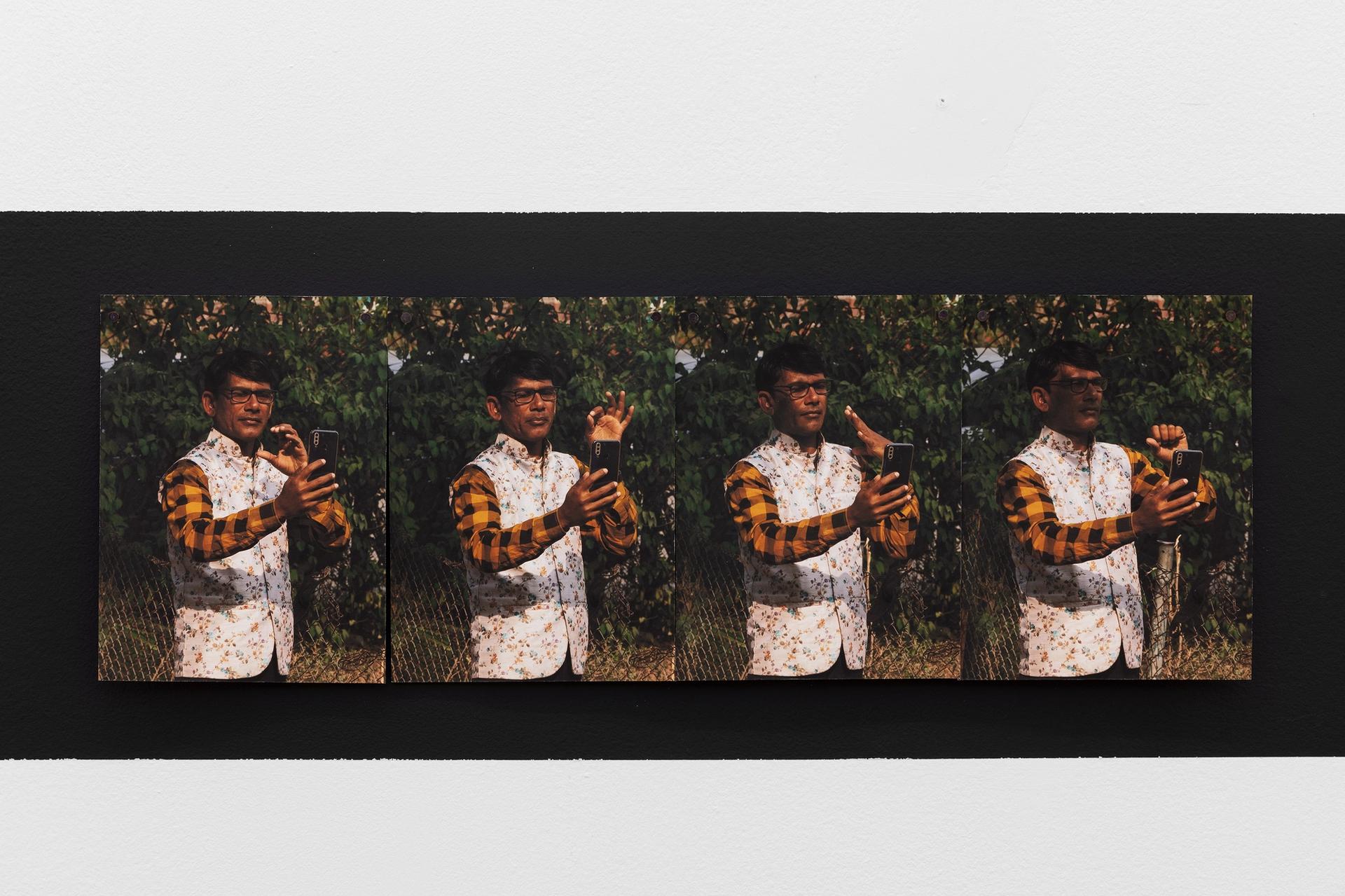 In Gestures, when led by a hair Dhunsi presents 36 portraits of a hearing impaired truck driver standing outside a factory. On the phone, he is communicating with his boss regarding issues with the cargo he’s collecting. Dhunsi observed him while he entered a factory and realized the great contrast between his quiet and affectual body language, to the unbearable noise outside.