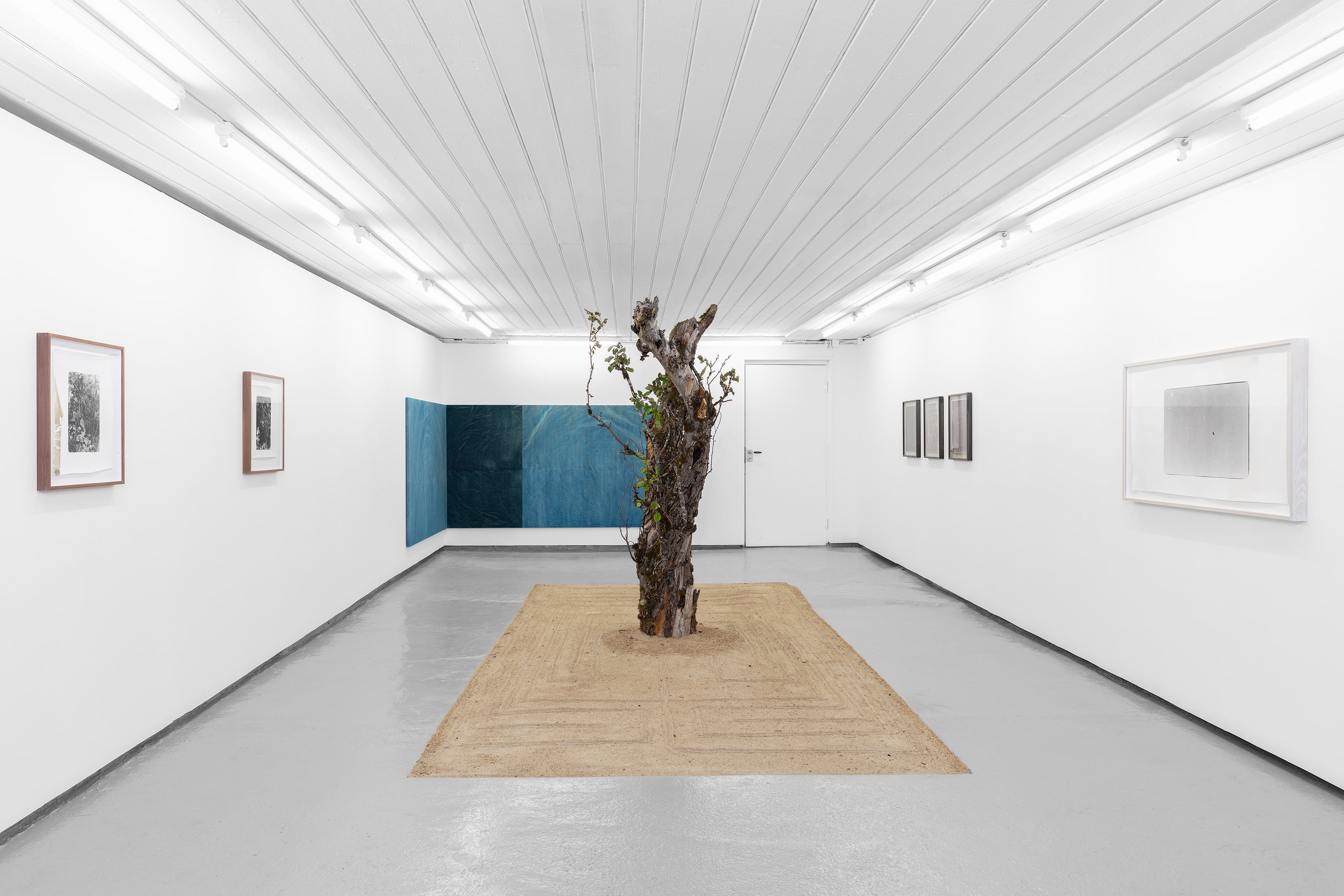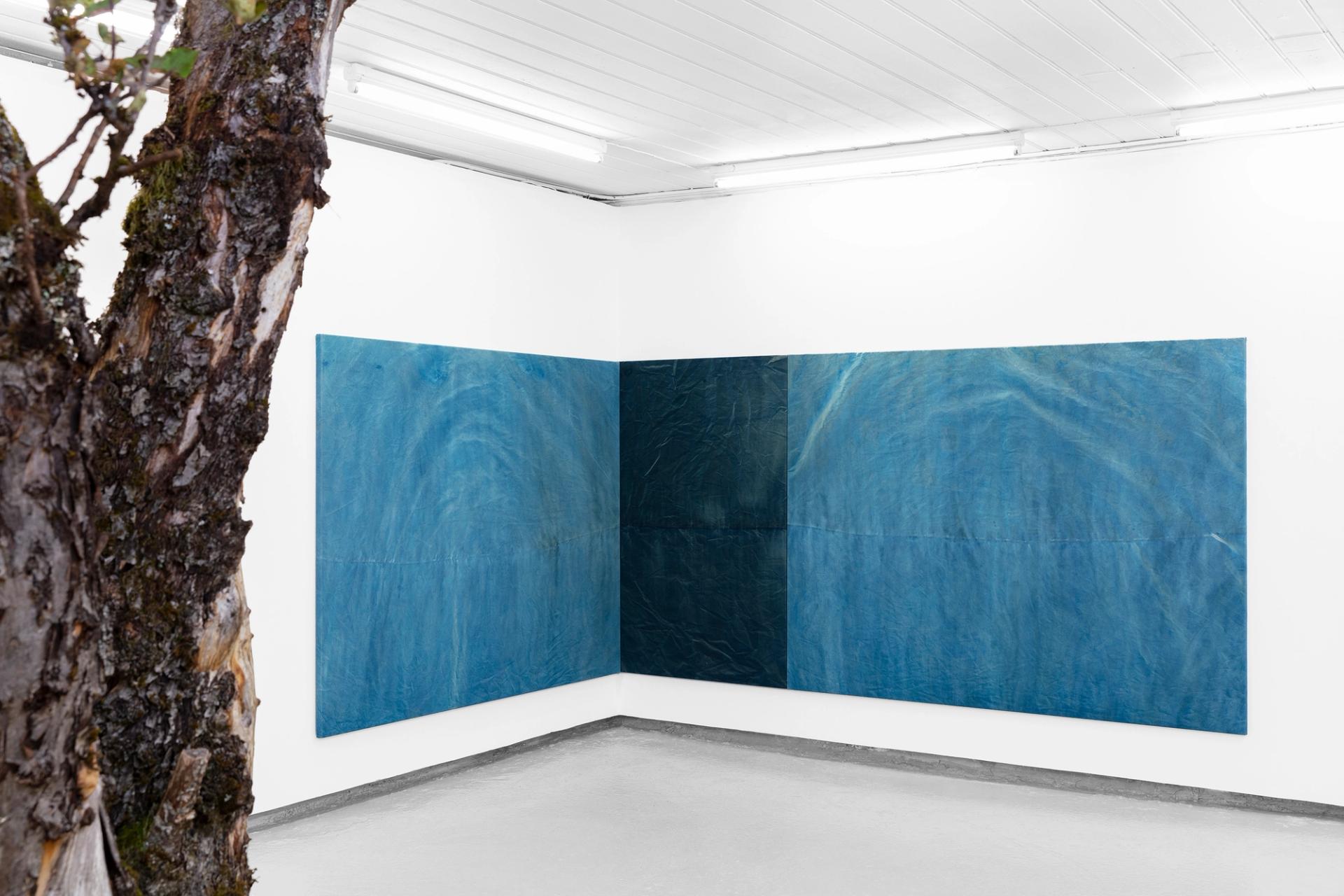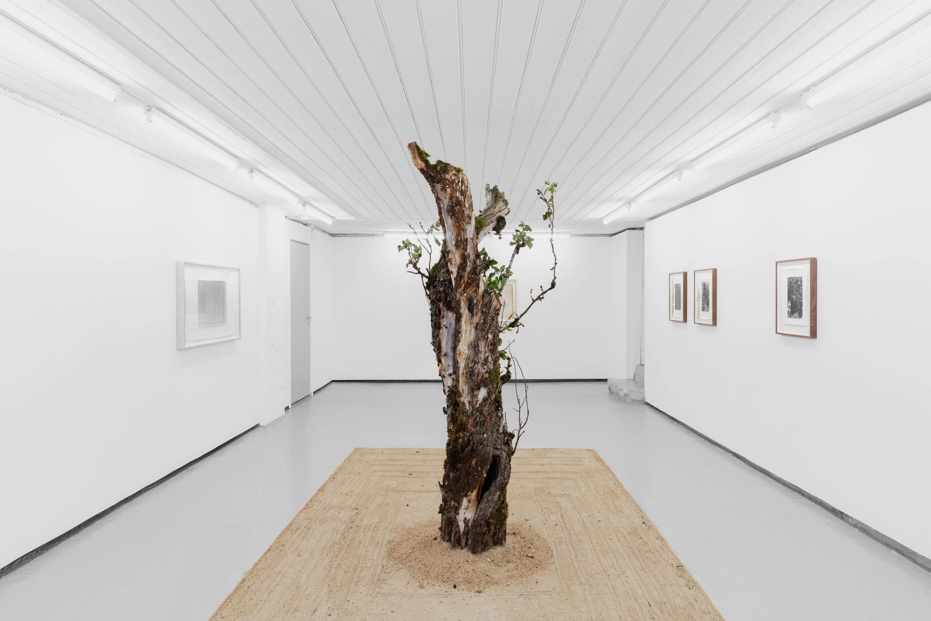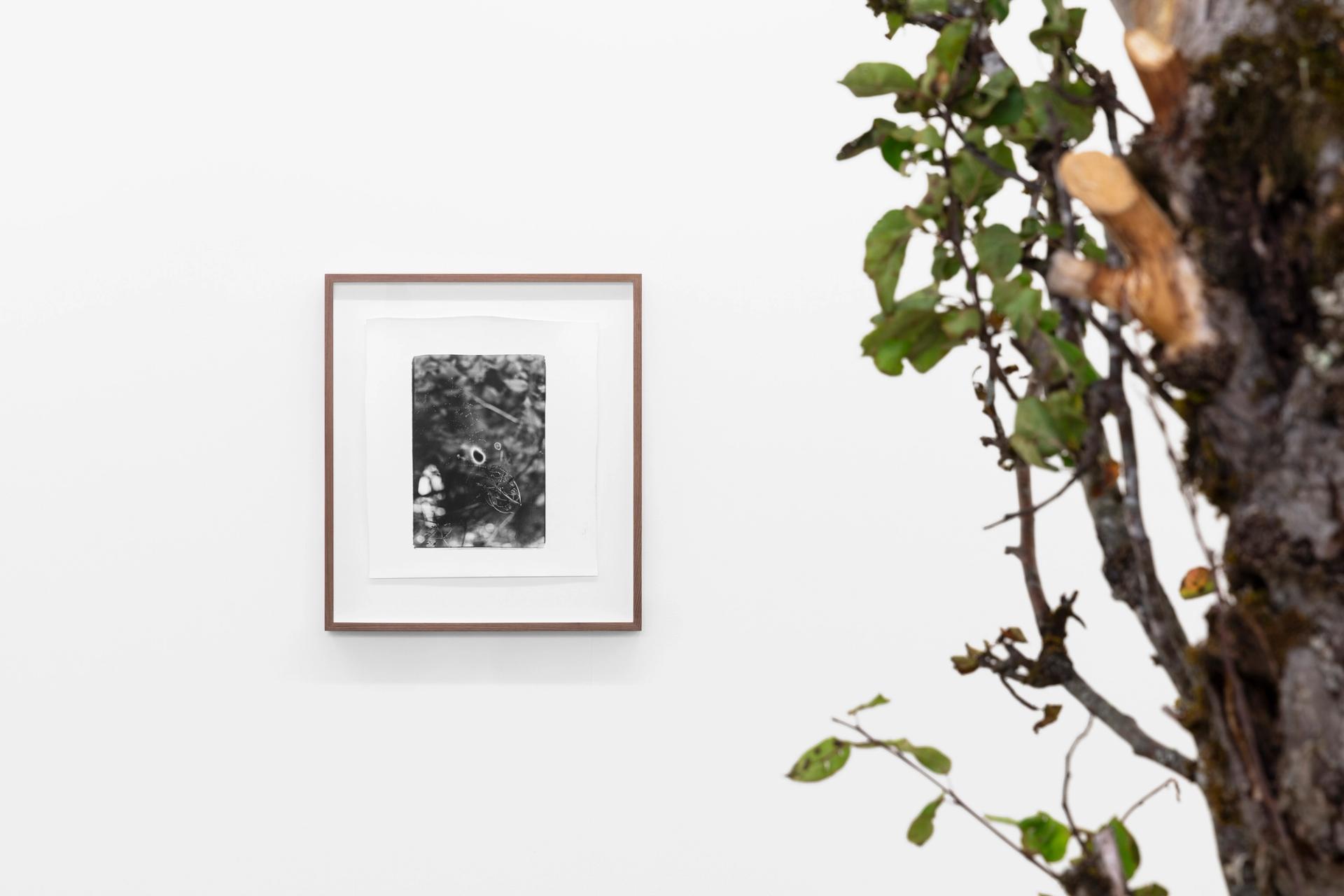 Phototropism is the movement of a plant bending towards the light, striving for sunlight—the source of life. Some fruiting mushrooms gravitate towards light as well, but the gravitation can also be towards fresh air, humidity and other nutrients. Tropism occurs in three sequential steps, starting with the sensation to a stimulus—meaning that it seeks stimulation in its surrounding environment. Sensationally all species gravitate towards habitats believed to be nourishing and rewarding, including us human beings. As an embodied experience and force, sunlight moves, affects, creates movement, forms and generates. It changes and manifests conditions and milieus. This embodied experience, human or not, is the weather. Weather, as Astrida Neimanis has so beautifully pointed out, is “context and milieu”, it is “an intra-active, naturalcultural phenomenon.” Weather is a material and sensational phenomenon—a processual force that makes human bodies, plants and fungi, water and sand transform one another in the creating of its environment. For tropism, as process philosopher Gilbert Simondon has argued, is our existence in the world before perception: “a being that does not yet grasp objects but directions, paths going upward or downward, toward darkness and toward light.” It is a body in action beyond interpretation, orienting toward a pairing of sensation and tropism. Phototropism (Bending Towards the Light) draws inspiration from such tropical pairing, emphasizing the productions of sensation and existence emerging between living and nonliving beings: falcons watching the meadow, one flying below the third quarter moon; wild apple trees slowly decaying in morning mist; rain washing off paper, cotton and linen prints. The tropism of Phototropism (Bending Towards the Light) emerges via moonlight and sunlight, bonding human and nonhuman beings, while turning the exhibition space into a dynamic atmosphere.