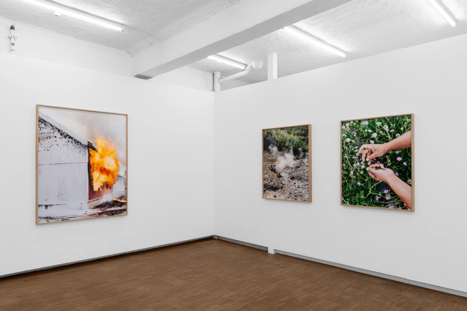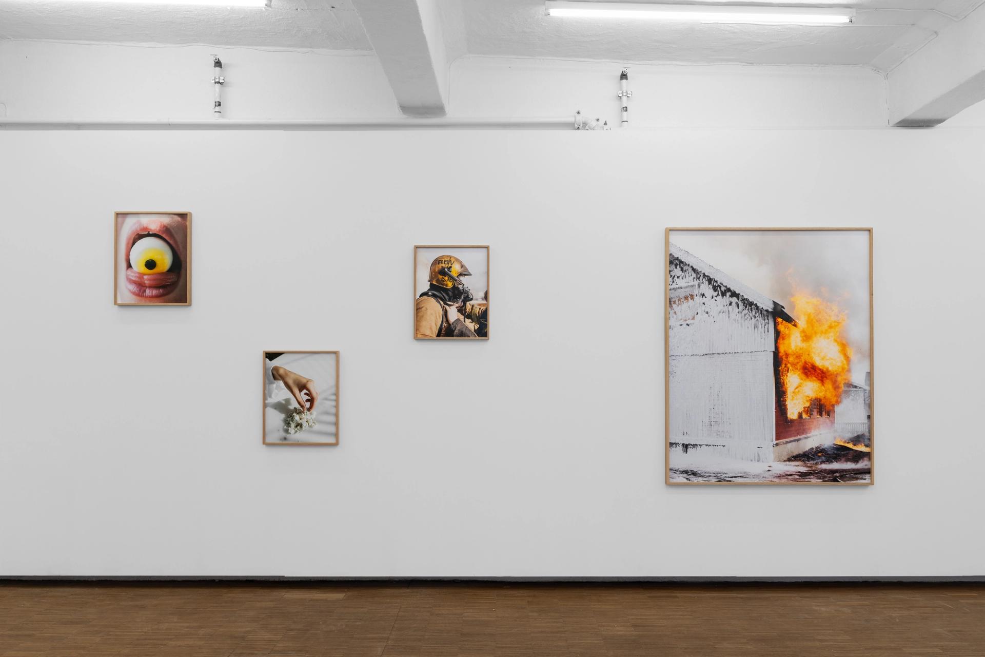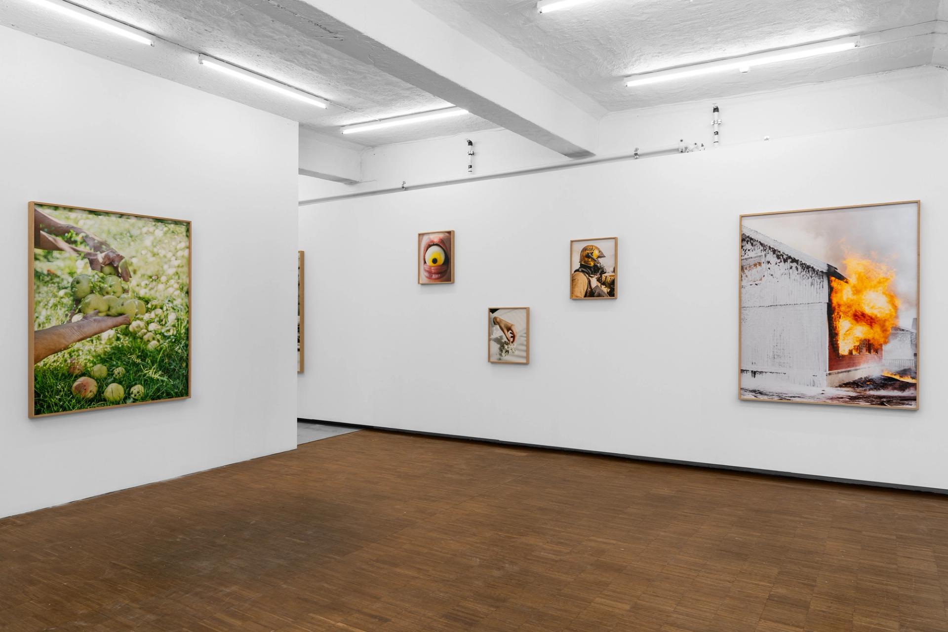 The twenty-two photographs on view can roughly be sorted in four categories: semi-close ups of hands that carefully hold an apple, adjusts a helmet, or handle a machine – minor actions directed at major threats, landscapes that have suffered environmental damage, emergency service exercises involving emblematic danger signals such as fire and smoke, and close-ups of models or sculptures of bodily parts. The risks and possibilities of the future are complex, contradictory, and difficult to keep in eyesight and to act on. Honerud’s photographs reflect an ambition to try.