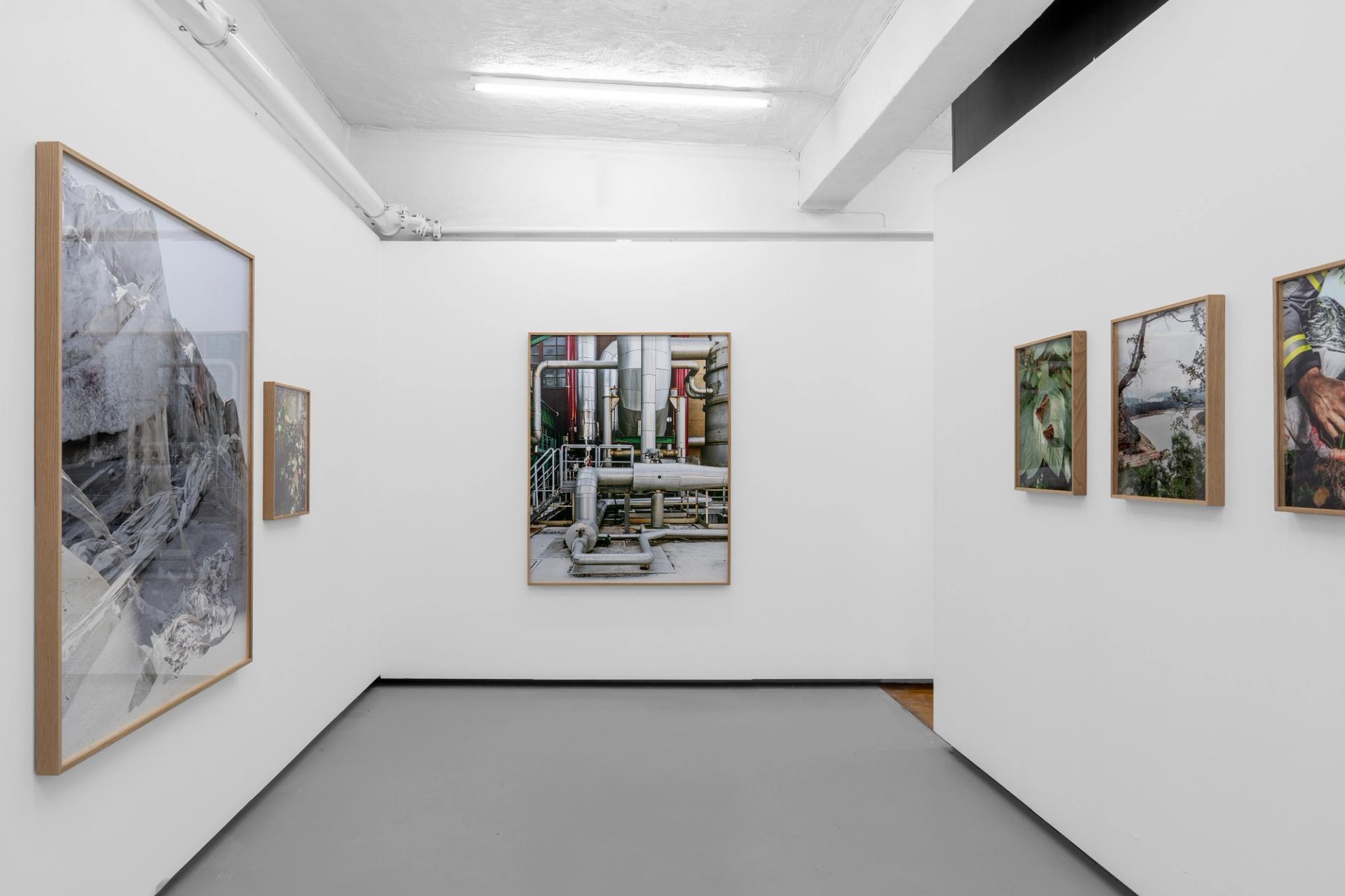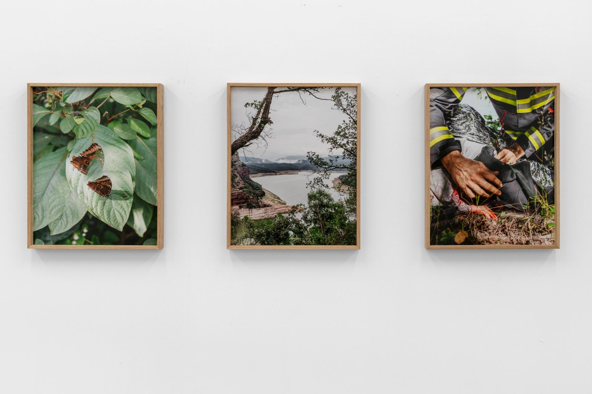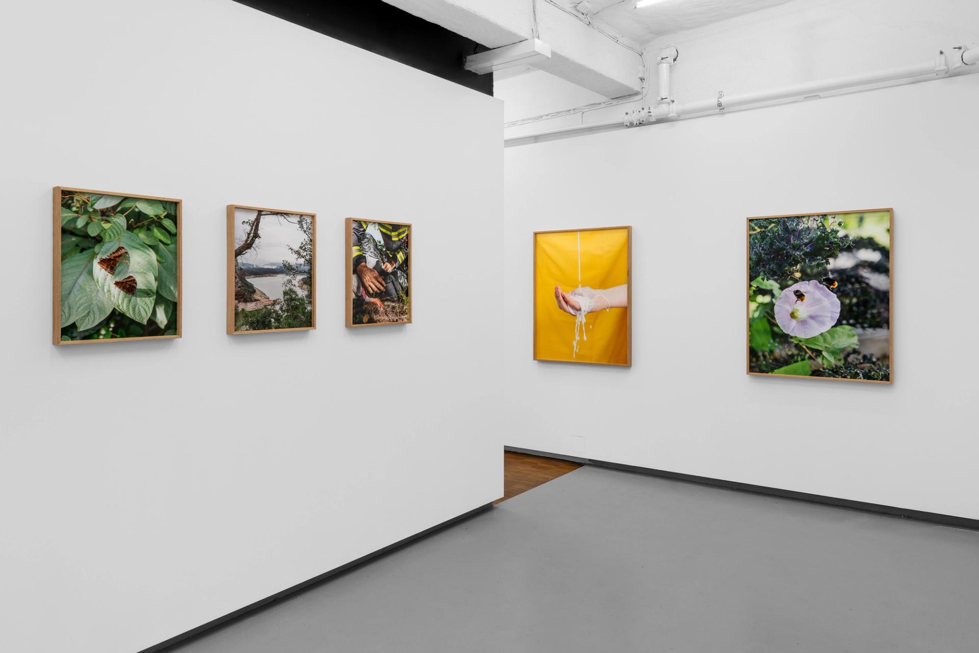 Particularly relevant for Honerud’s project is Sontag’s pondering on the ambiguity of photographic “truth” and of whether staged or edited photographs may still convey any such thing. While Honerud’s practice is rooted in the long-standing tradition of socially engaged documentary, Regarding the Pain of the Future continues her more recent experimaentation with image manipulation by using Photoshop against the grain. Interspersed across the gallery are a handful of photographs that tickle both our perception and cognition in that they do not seem to add up to one coherent image. In one work, a butterfly on a leaf, photographed in the botanical garden in Copenhagen, is cloned and stamped at a different size. Two versions of the same detail interlace to convey a jolted slide of scale that subtly evokes a slippage between self and world, micro- and macrolevel events (think of the butterfly effect), present and future.
