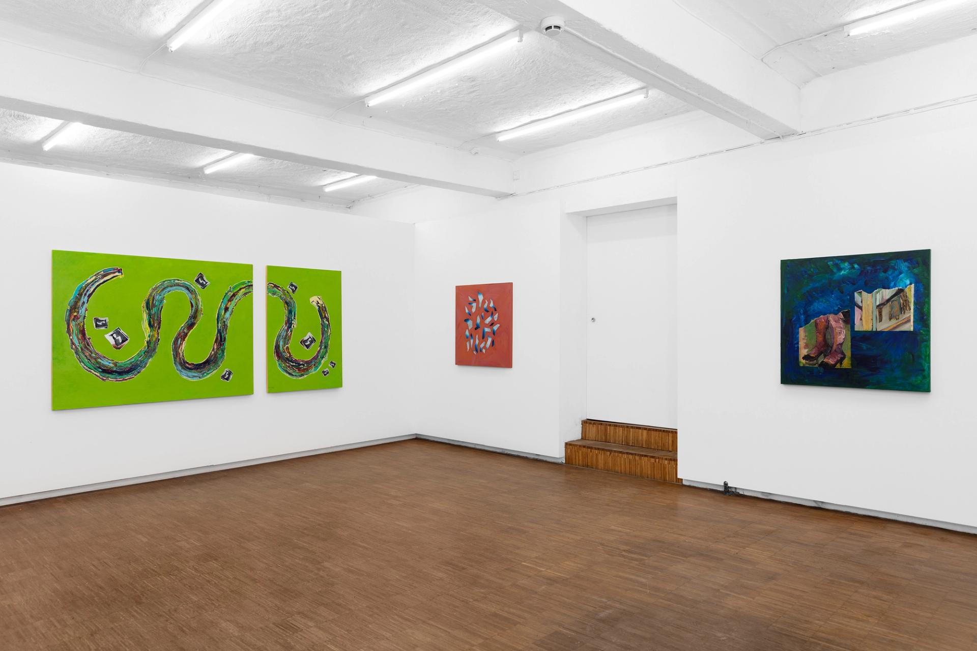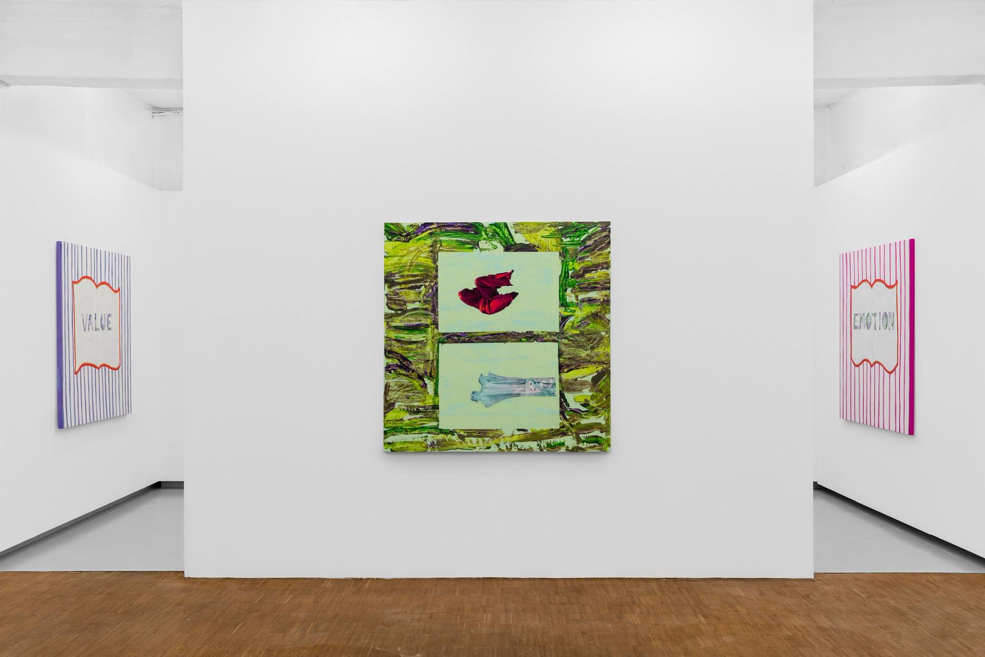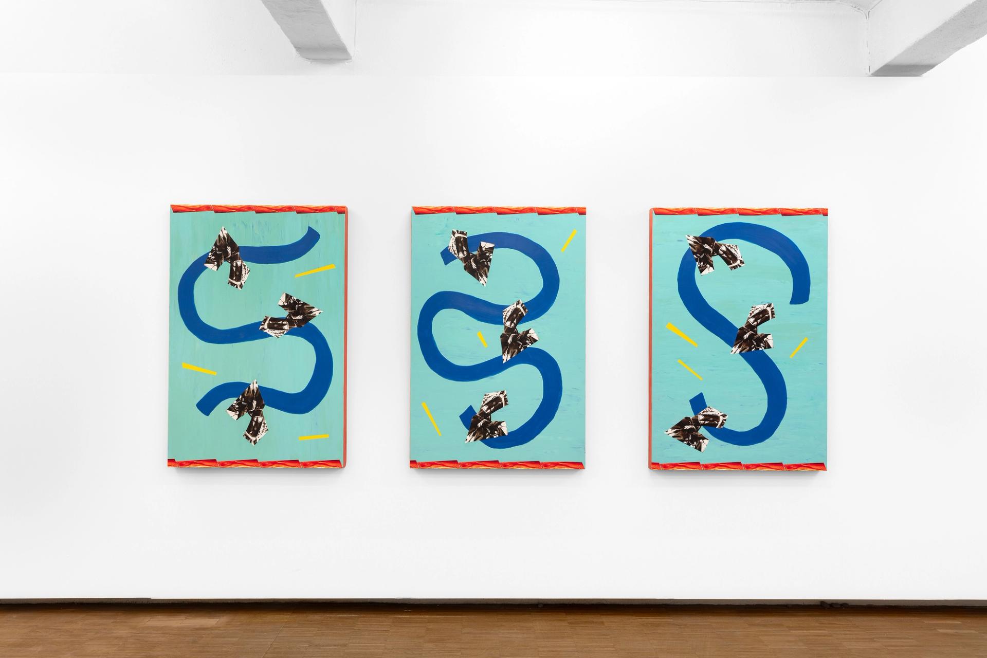 It is about more than just the objects themselves, but rather their carefully constructed scenographies of desire in which they sit. Expanding beyond their physical form or surface-level representation, these objects cultivate memories, emotions, a philosophy, a way of being - the idea that they could make everything make sense. In SPEEDY WINDOWS, these images land in new, painted landscapes that reconfigure, obscure and question their intended purpose or context. Things are given new relationships and no clear meanings.