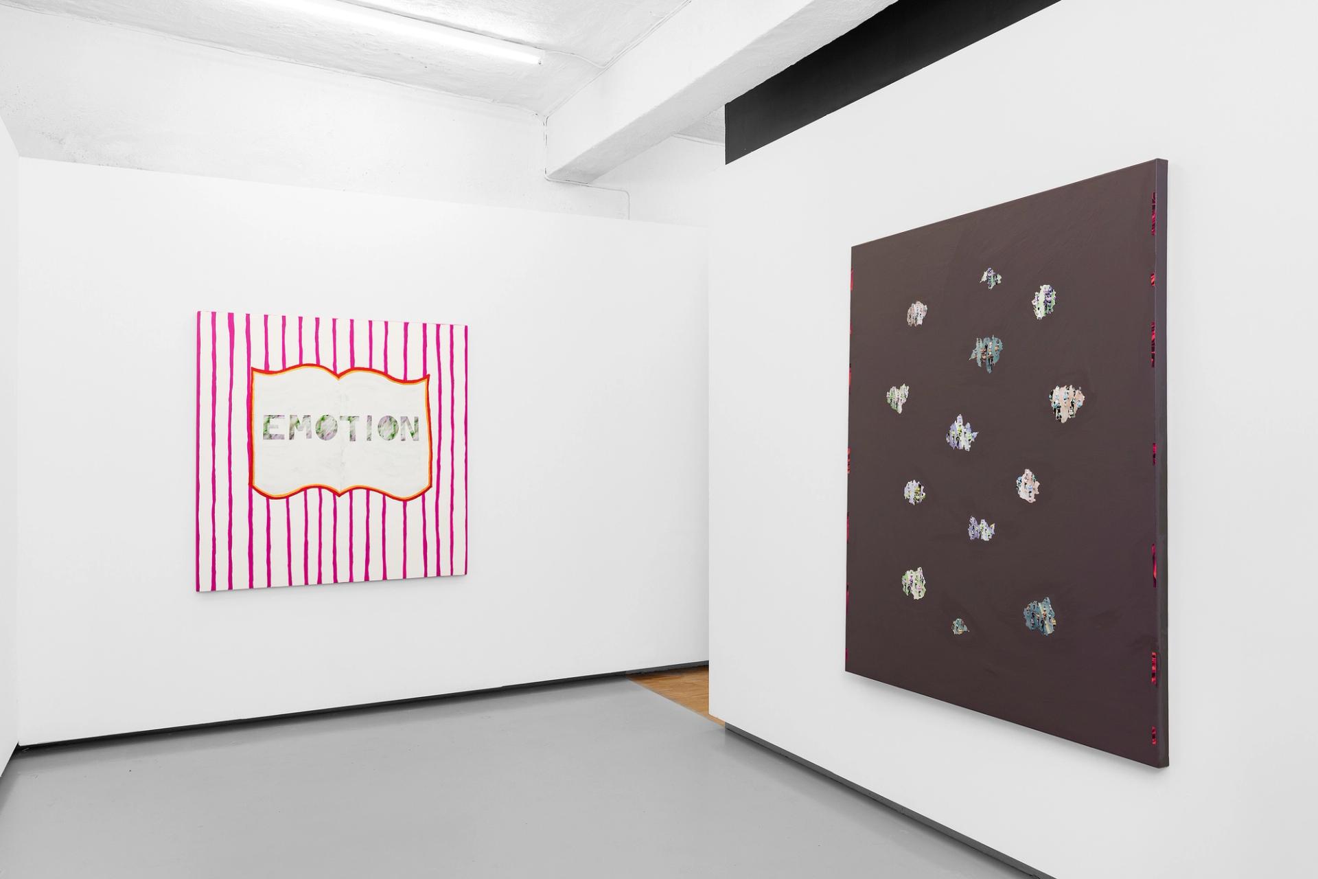 In her first exhibition at MELK titled “The Conclusion” Alsharif presents two bodies of work comprising overlapping elements of collage, painting and textile. The works in the exhibition spring from Alsharif’s rudimentary methods and processes where the collage often acts as both an abstract and figurative starting point.
