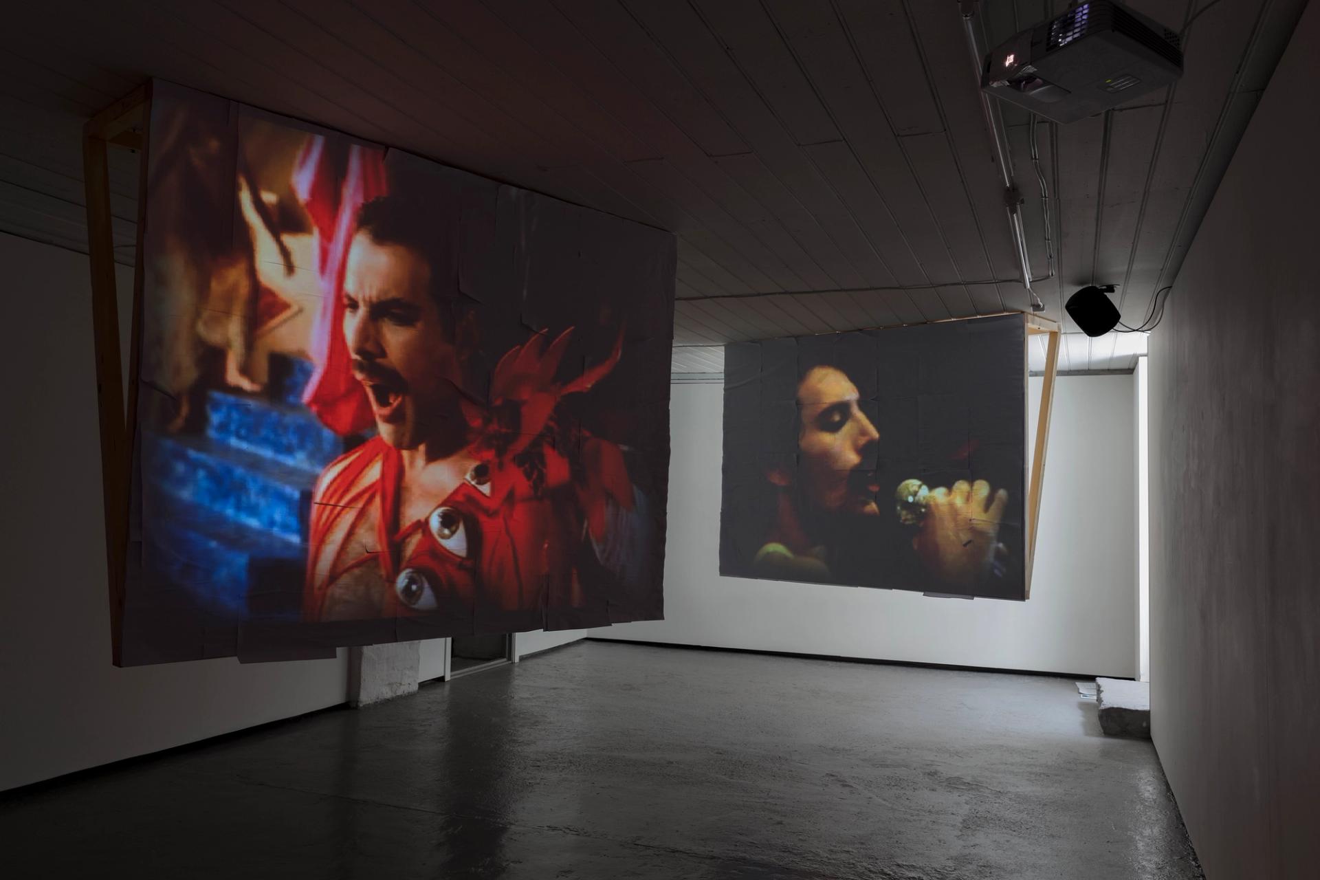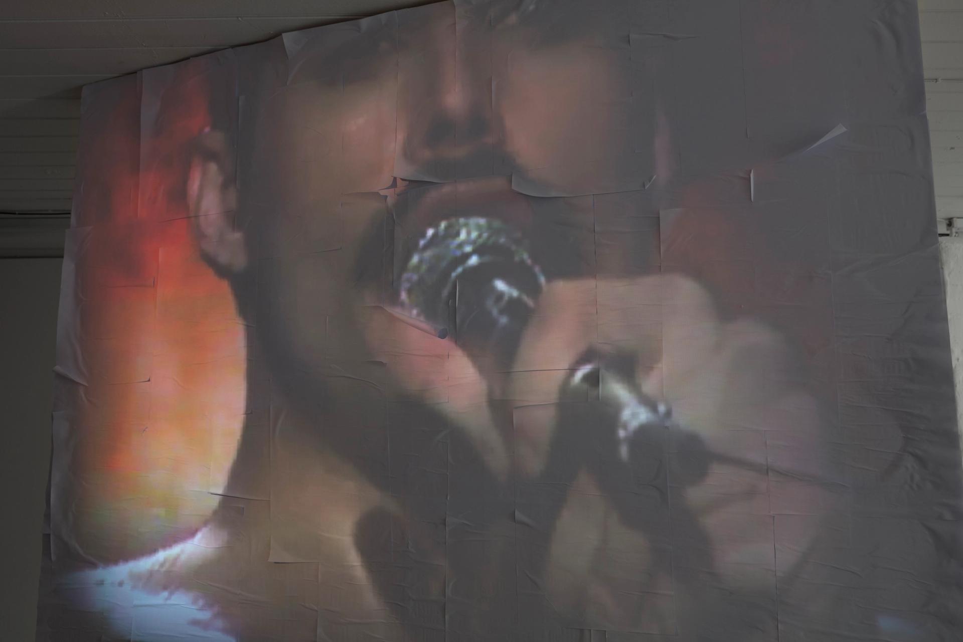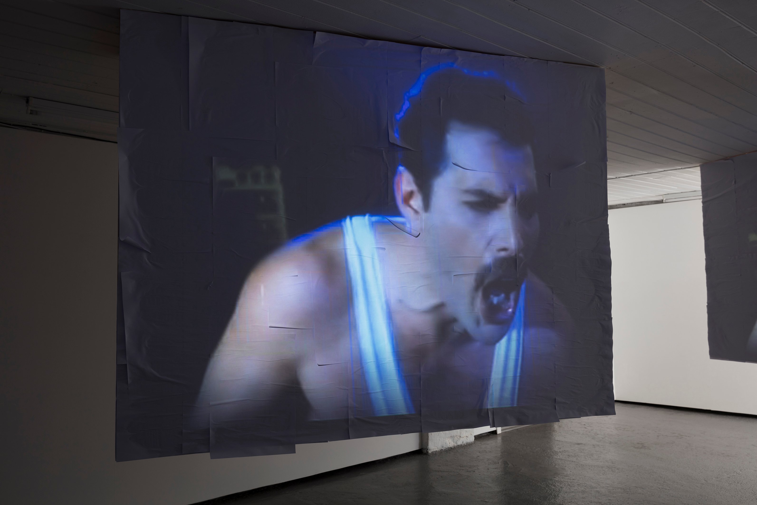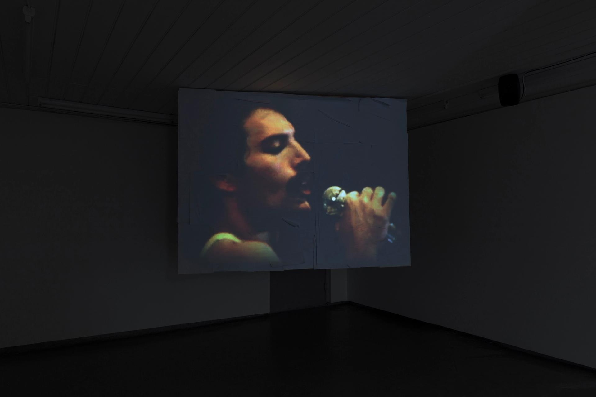 Dust Biter is a video work situated within the forms of audio-visual remix and Plunderphonics. It seduces the audience by translating Freddie Mercury’s body, breath, and voice into an intricate rhythm of pure energy, an orgasmic force to reboot our metabolism. Projected onto three screens that surround the viewers, the audience become immersed in the work.