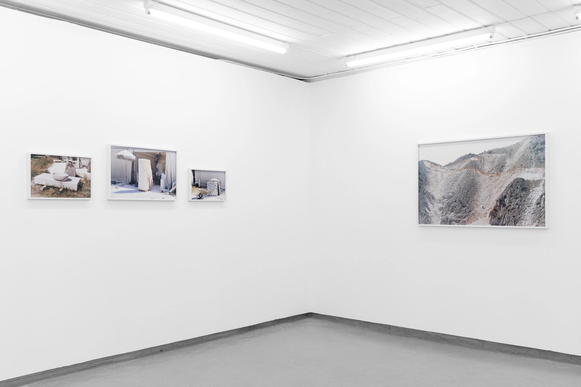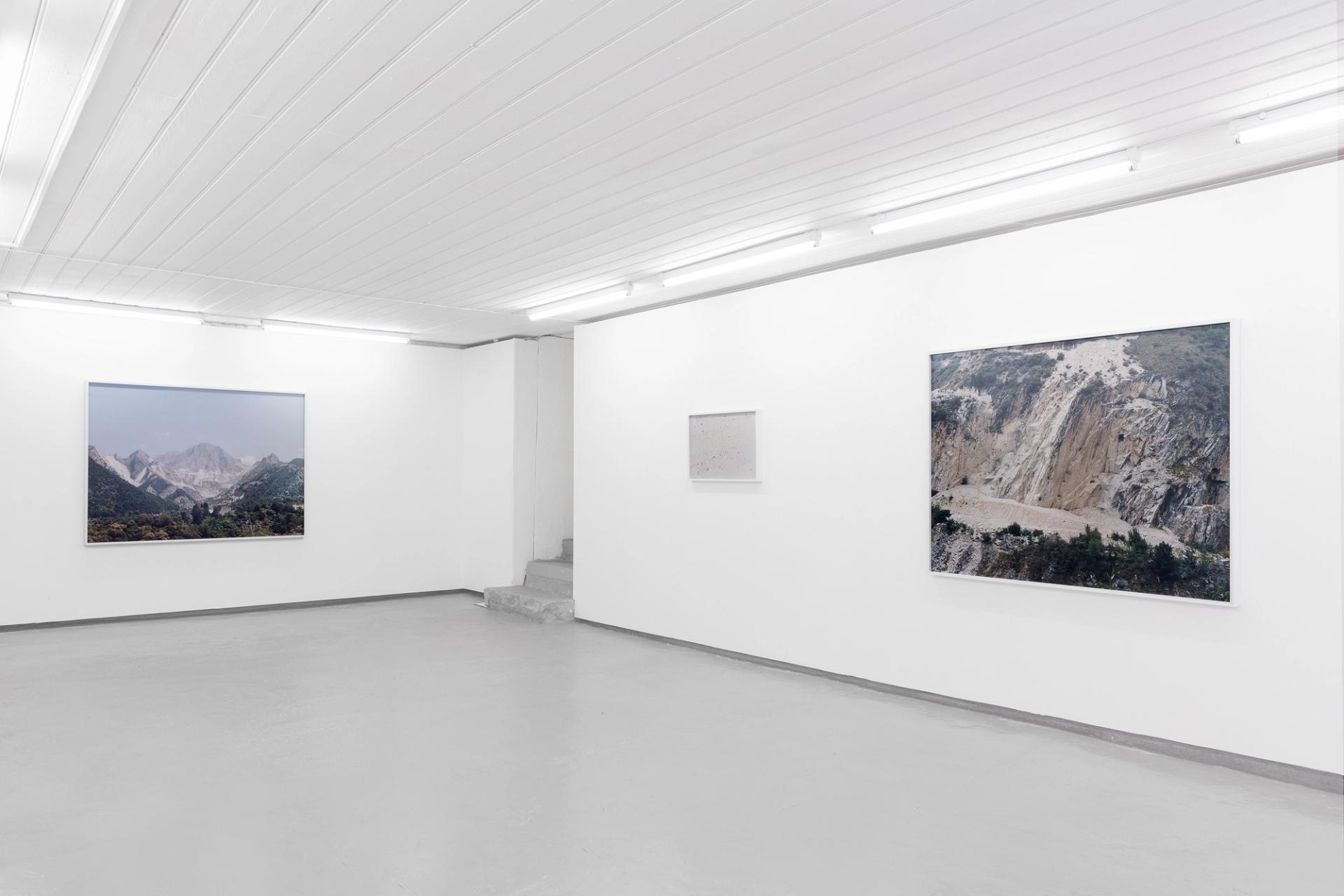 Today up to a million tonnes of marble is extracted annually from the mountain range in Carrara. In some cases, entire peaks have been ripped away and the disposal of quarry waste pollutes springs and streams. Seen from afar, the blindingly white permanent scars from centuries upon centuries of excavations look like snow patches against the darkened rock.